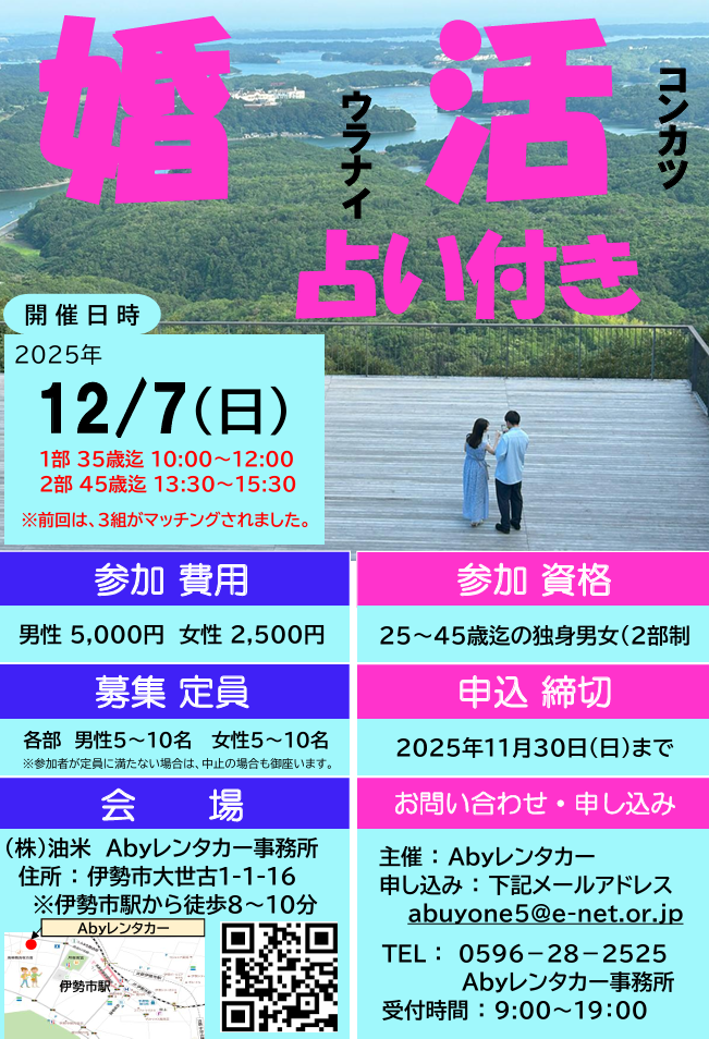 会場 | Abyレンタカー(伊勢市大世古1-1-16) |