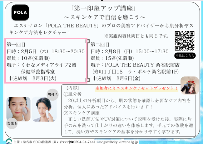| イベント名 | 第一印象アップ講座 2/5 ~スキンケアで自信を磨こう~ |