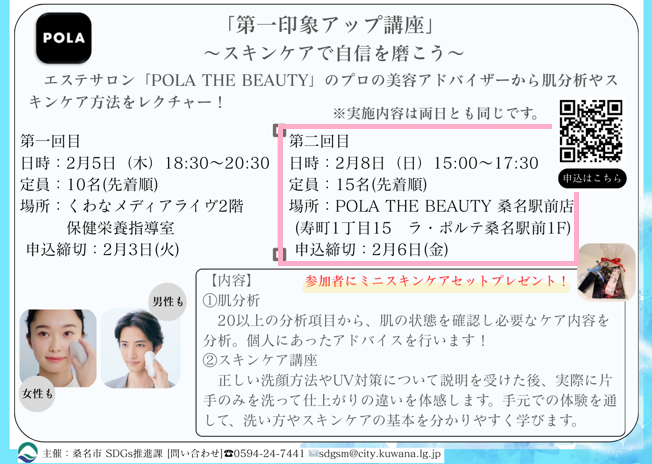 | イベント名 | 第一印象アップ講座 2/8 ~スキンケアで自信を磨こう~ |