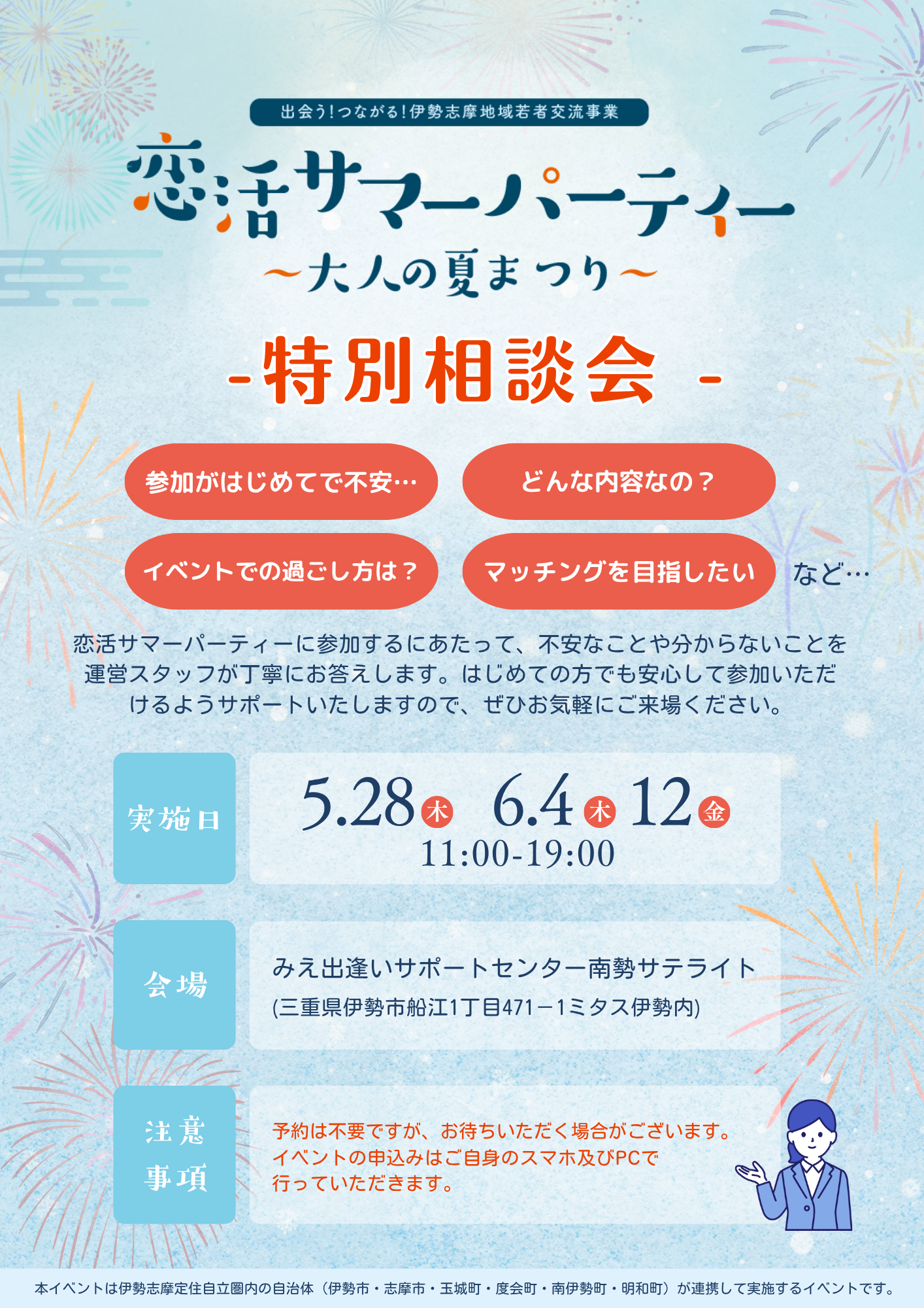 イベント名 出会う!つながる!伊勢志摩地域若者交流事業 恋活サマーパーティー ~大人の夏まつり~
