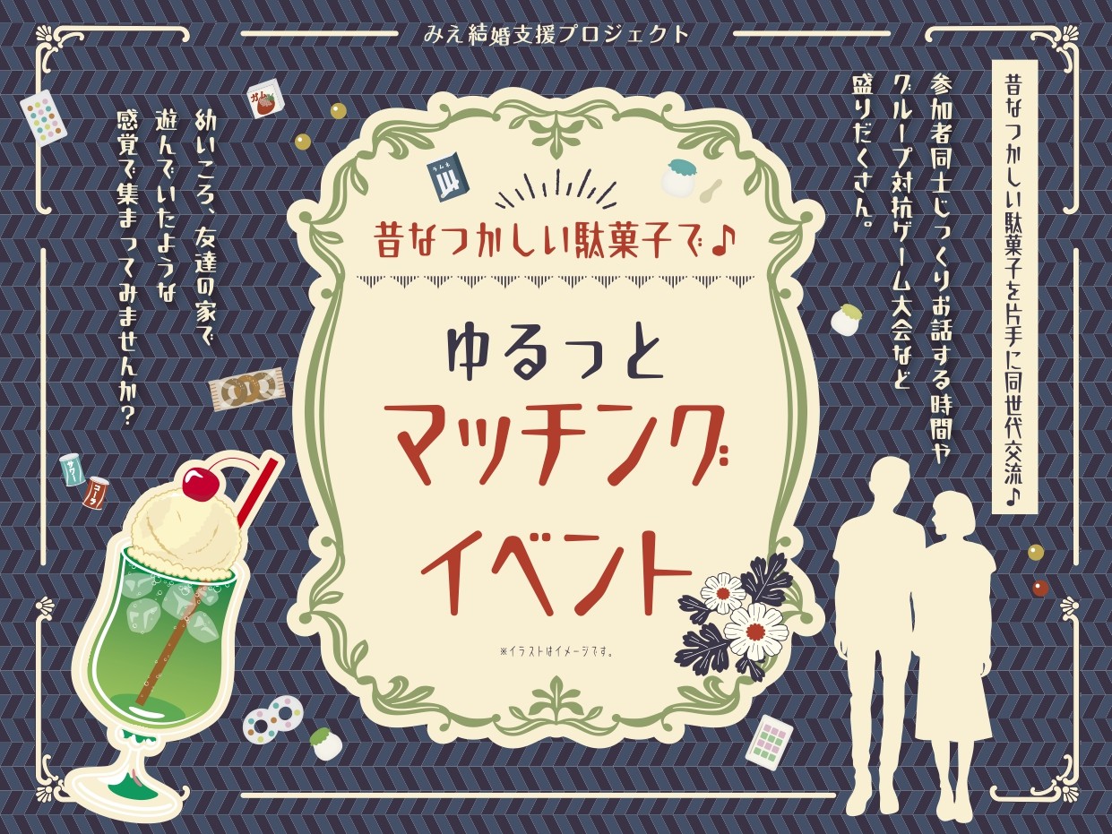 | イベント名 | 🍬昔なつかしい駄菓子で♪🍬ゆるっとマッチングイベント(みえ結婚支援プロジェクト) |