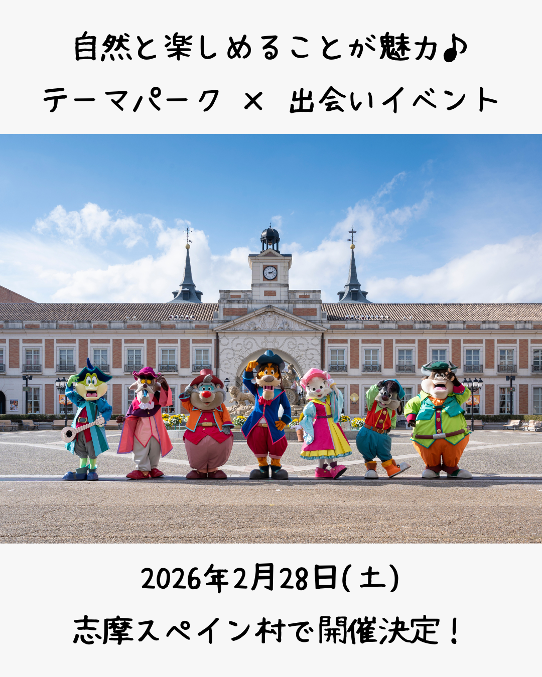 | イベント名 | 【出会いを探している人集合】遊びごころを取り戻せ!in志摩スペイン村 |